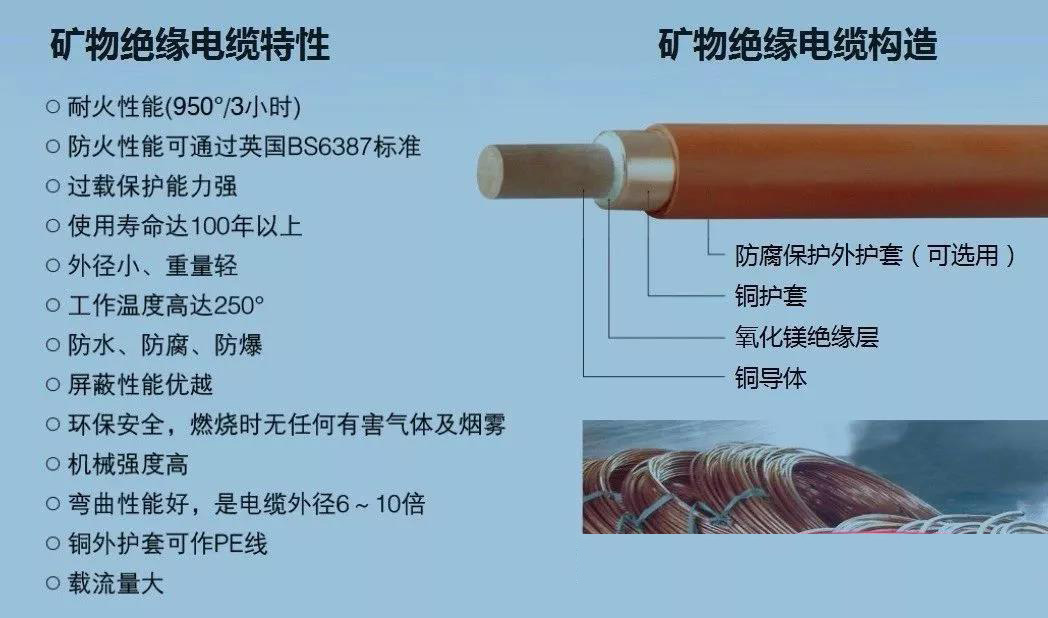 礦物絕緣電纜是采用無機物氧化鎂作為芯線絕緣材料,無縫銅管外套和銅質線芯。